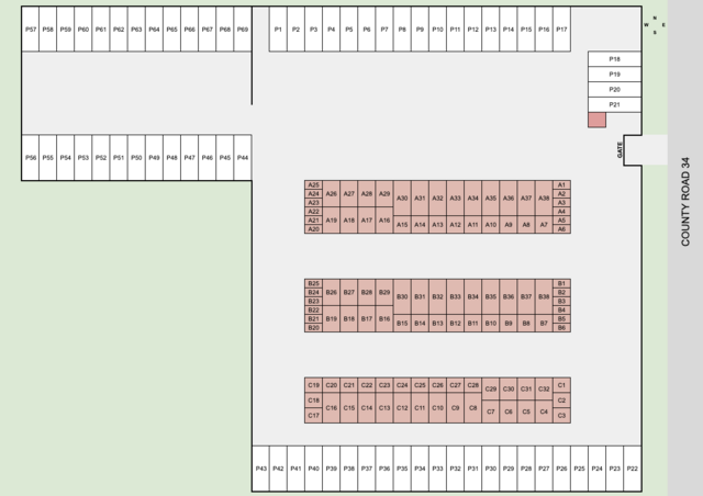 Site Map of Universal Storage Solutions located at 3910 County Rd 34, Alexandria ON. Click the right arrow to zoom in on each building and parking area. Thank you!
